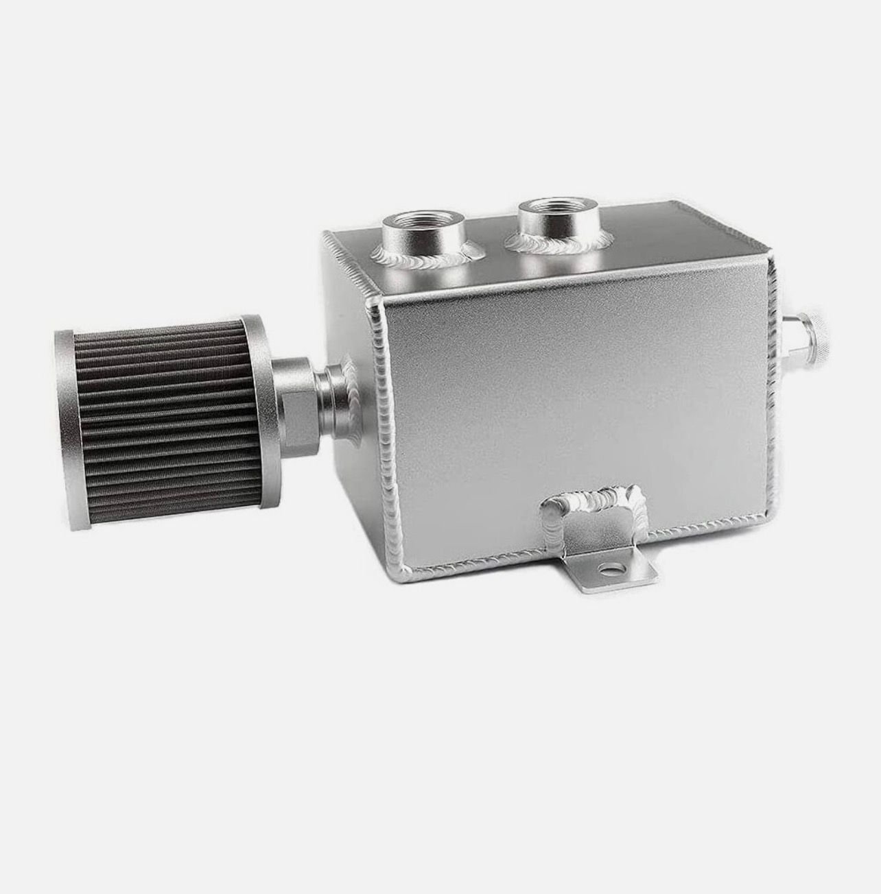 This high-capacity 2L oil catch can is engineered to protect your engine by capturing oil vapors and moisture from the PCV system or valve cover. By preventing these contaminants from recirculating into the intake manifold, it ensures a cleaner combustion process, reduces carbon buildup, and helps maintain consistent performance under high-boost or racing conditions.